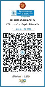 Allahabad Musical Welfare SocietyA/C No…60510535847SavingsIFSC …MAHB0001291Bank of Maharashtra (civil lines Branch) Sarojani Naidu Marg Prayagraj 211001 vpa: nvk1ws3rp9s1@mahb